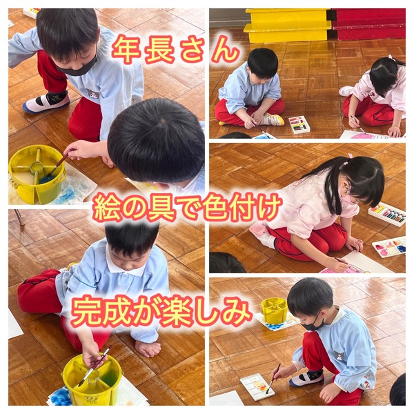 R8年2月19日 完成が楽しみ!絵の具とちぎり絵の制作活動