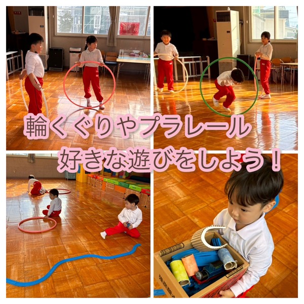 • 輪くぐりやプラレールで遊ぶ子どもたち