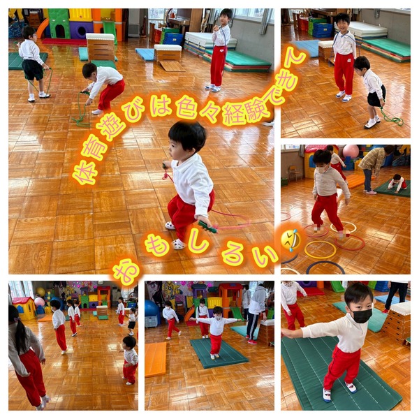 今日は体育遊びがありました。準備運動や縄跳びをしっかりして体を温めてから、跳び箱、マット、ケンパにすすみました。跳び箱では開脚・横跳び・台上前転などを経験し、それぞれに頑張る姿が見られました。その後、年長さんは月刊紙で体の仕組みについても学習していましたよ。たくさん体を動かし、頭を動かした一日でした。