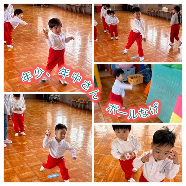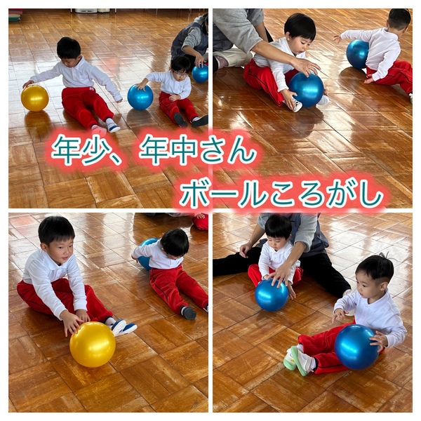今日は体育遊びを行いました。大きなボールでは、体の周りを転がしたり、キャッチしたりしながらボールに親しみました。また、小さなボールでは「投げる」動きに挑戦し、体の使い方を楽しく学びました。どの子も一生懸命に取り組む姿が見られ、笑顔あふれる、とても充実した体育遊びの時間となりました。