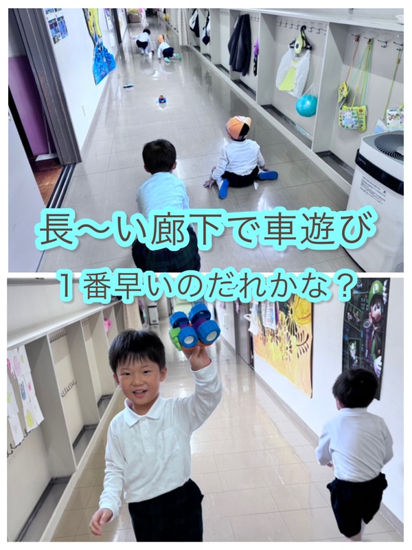 • 年少・年中 廊下で車遊び