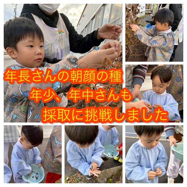 今日は幼稚園でお遊び会がありました。4人の小さなお友達が遊びに来てくれて、在園児たちが作ったサーキットや大きなレゴブロックで楽しく遊びました。高い塔を作ったり、思い切り倒したりと、元気いっぱいの笑顔がたくさん見られました。その後は年少さん・年中さんは年長さんの朝顔の種取に挑戦しました。園の周りを散策もして秋らしく真っ赤な紅葉を拾いながら、もみじ狩り気分で園に戻ってきました。楽しい秋の一日になりました。