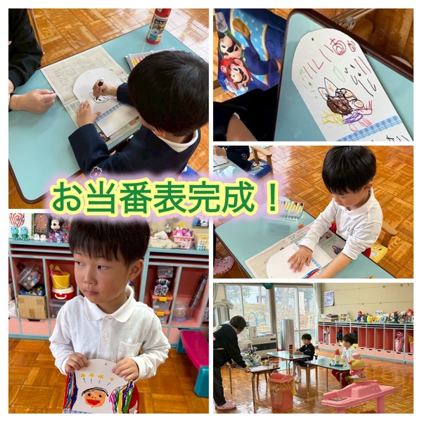卒園・修了式に向けて、年長さんも年中少さんも一緒に練習をがんばっています。大きな声で歌ったり、背筋を伸ばして座っていたりするのは少し大変そうですが、みんな一生懸命取り組んでいます。年長さんも大きな声で返事をしたり言葉を言ったりと頑張っています。練習の後は、年長さんがお部屋でお絵かき歌の「コックさん」を楽しく描いて過ごしました。年中少さんは手作りバスがブームで、先生やバスの運転手さんが色々工夫してくれています。
