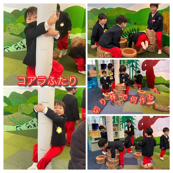 今日はどのクラスもそれぞれの活動に一生懸命取り組む1日となりました。年長さんはお店屋さんごっこに向けて折り紙製作を頑張り、年少さん・年中さんはリトミックや絵本を楽しみました。又、年中さんが図鑑を開いて見ているとそれをまねっこして年少さん全員が図鑑を見るという微笑ましい場面もありました。年齢を超えて自然と広がる”まねっこ学び”がとても可愛らしかったです。また、園の玄関ではクリスマスの飾りにライトが付けられさらに華やかになりました。キラキラ光る飾りに子ども達も「きれい〜!」と大喜びです。