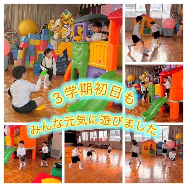 今日から三学期がスタートしました。始業式には、みんな元気に登園し、幼稚園も子どもたちの声でにぎやかになりました。