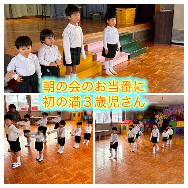 また、朝の会では満3歳児さんが初めてお当番に挑戦し、微笑ましいひとときとなりました。三学期も楽しく過ごしていきたいと思います。