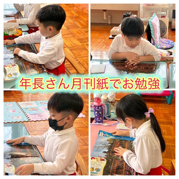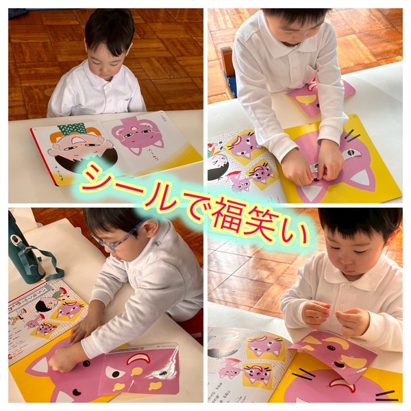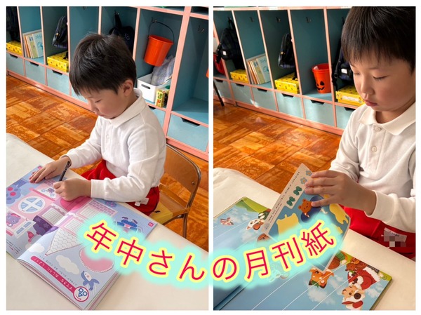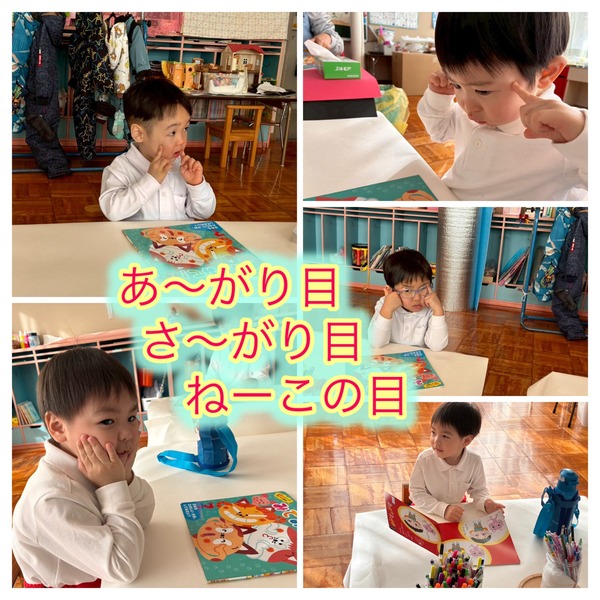 年長さんが来年度入園する小さなお友だちのための塗り絵制作から一日が始まりました。その後は雪遊びや月刊誌など、元気いっぱいたくさんの活動を楽しみました。年中さん・年少さんも月刊誌に取り組み、年少さんは「上がり目・下がり目・猫の目」を自分の顔で表現しながら挑戦。とても可愛らしい姿が見られました。今日も園内は、笑顔と楽しそうな声であふれていました。