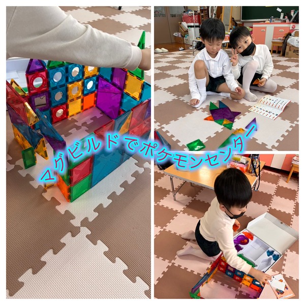 今日は東豊公園体育館へ行ってきました。朝の体育館は誰もいなく、広々とした中で追いかけっこやボール遊び、自分たちで並べたサーキットをして元気いっぱい遊びました。帰りに公園でチューブ滑りも少しだけして帰りは少しお疲れ気味で園に帰ってきました。お部屋遊びではマグビルドで綺麗な建物などを作っていましたよ。